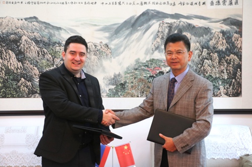 永利yl23411集团官网国际合作交流处处长帅式毅、艺术学院院长吴维勇等参加了会见。