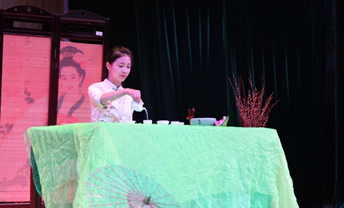 随后,各种形式的节目轮番上演。有古韵浓厚且充满文化底蕴的茶艺表演、充满激情与活力的爵士舞《As if it's your last》、饱含温暖的手影舞、瞬间引起全场兴趣,带动全场氛围的相声表演《满腹经纶》,还有那富有古典气韵的民族舞《越女吟》,让同学们仿佛置身于古代。十佳歌手们带来的《十佳歌曲串烧》让我们流连忘返,更有韦健华老师在其中演唱《一剪梅》,将现场气氛调动到了极致,一时间掌声、欢呼声不绝于耳。体育部和助导们的舞蹈串烧《雷呀雷呀雷》,更是让人们激动不已。小品《原则》发人深省,引人深思,而影子戏《光影青春》平实无华的语言,更是引起了大家的共鸣,给同学们带来了一场视觉盛宴。整场晚会座无虚席,精彩不断,气氛热烈,掌声、欢呼呐喊声此起彼伏。《Fashion. show》走秀给同学们带来了美的享受,并为本场晚会画上了圆满的句号。
