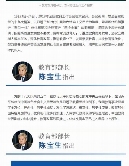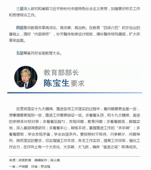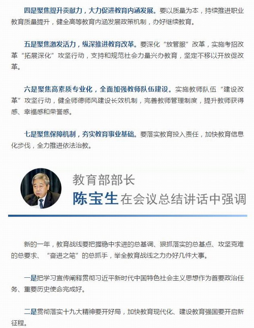 快讯!教育部长陈宝生提出2018年实施“奋进之笔”7大主攻方向