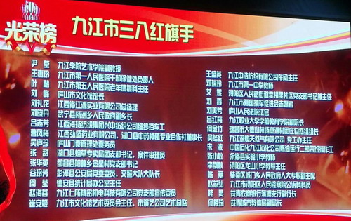 在第108个国际妇女节来临前夕的3月7日上午,九江市妇女联合会在九江市艺术中心举行颁奖大会,表彰全市各条战线上的30名三八红旗手,20个三八红旗集体。永利yl23411集团官网艺术学院青年教师尹莹喜获九江市三八红旗手荣誉称号。