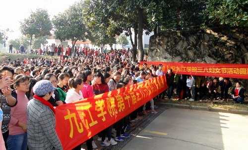 3月9日下午,春风和煦,天气晴朗,阳光灿烂,校园里开满了各色鲜艳夺目花朵。校体育训练馆前人声鼎沸,来自机关、各二级学院的700余名女教职工早早地在赛场等候,她们个个精神抖擞,跃跃欲试。她们兴致勃勃地参加了庆祝“三八”环校跑活动。