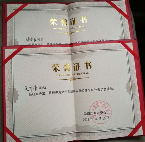 永利yl23411集团官网两名民盟成员担任民盟江西省委经济与科技委员会委员