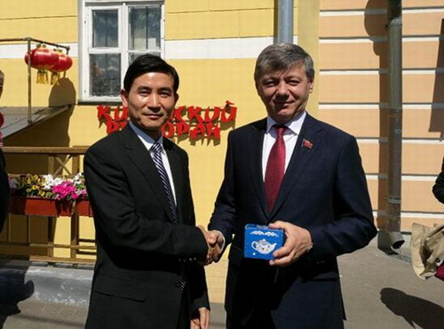 俄共中央副主席德米特里·诺维科夫接见魏立平,并欣然接受魏立平代表九江学院赠送的礼品