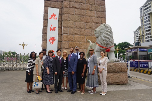 仪式结束后,杨耀防副校长陪同代表团成员参观了两南山和青衿园。在两南山,杨副校长为来宾介绍了陶渊明和陈寅恪的生平典故,以及他们对中华文化的贡献;在青衿园,杨副校长介绍了白鹿洞书院学规,讲解详实丰富,语言深入浅出,诙谐幽默,激发了萨凡纳市教育工作者对中华文化的兴趣和了解。