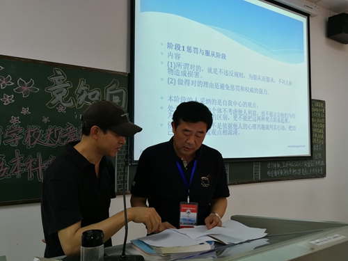 下午第七节课,周忠伟教授来到艺术学院西105教室听取了政法学院教师曹卫平主讲的《教育心理学》课程。随后,第八节课,周忠伟教授来到香远楼405教室,听取了政法学院刘士国老师主讲《犯罪学》,周教授与两位老师进行了简要交流,并认真检查了教学大纲和授课计划。