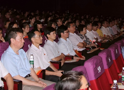 江西省教育厅副巡视员张爱萍,九江学院在家校领导赵伟、刘晓东、魏立平、王万山、杨耀防、查振华,九江职业大学党委副书记周春明,九江职业技术学院副校长刘南平,江西财经职业学院党委副书记、常务副校长何先应,九江市教育局副局长刘金梅,江西枫林涉外学院副院长卢仕宏,九江四所高校和共青科技职业学院相关部门负责人与千余名师生代表现场观看了演出。