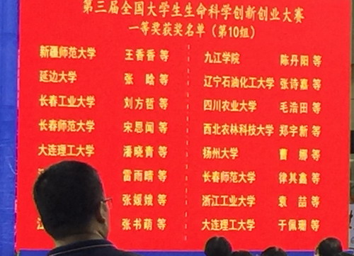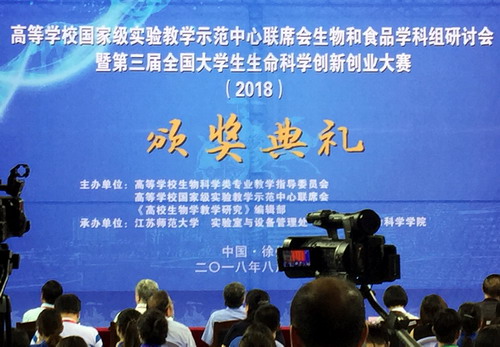 8月7-9日,由高等学校生物科学类专业教学指导委员会、高等学校国家级实验教学示范中联席会、《高等生物学教学研究》编辑部联合主办,由江苏师范大学、吉林大学生物国家级实验教学示范中心、吉林省生物化学与分子生物学会联合承办的第三届全国大学生生命科学创新创业大赛决赛在江苏省徐州市江苏师范大学举行。