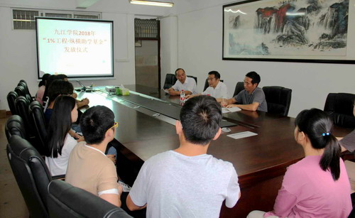 9月12日下午, 2018年度“1%工程·纵横助学基金”发放仪式在永利yl23411集团官网竞知楼412会议室举行。党委委员、统战部部长刘遵海,学生资助管理中心主任潘建华和本次受到资助的学生出席发放仪式。仪式由民进九江市委会副主委、九江学院总支主委赵追主持。