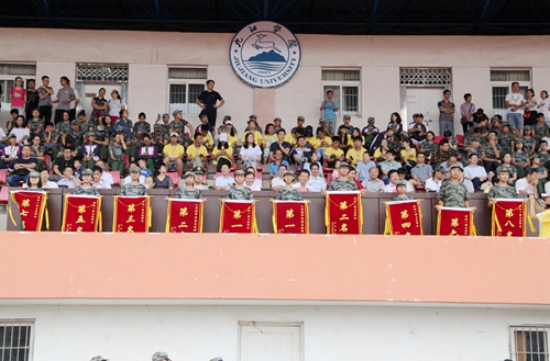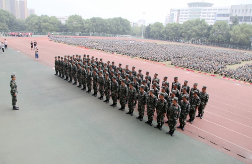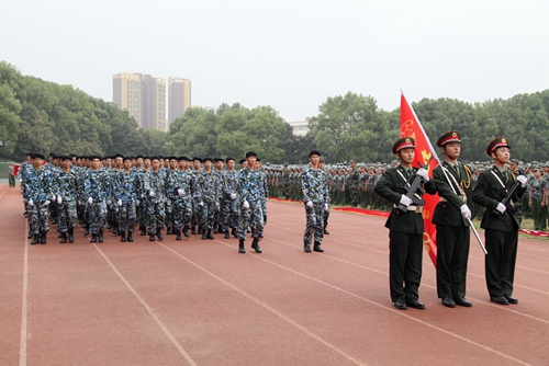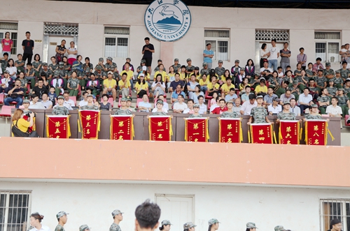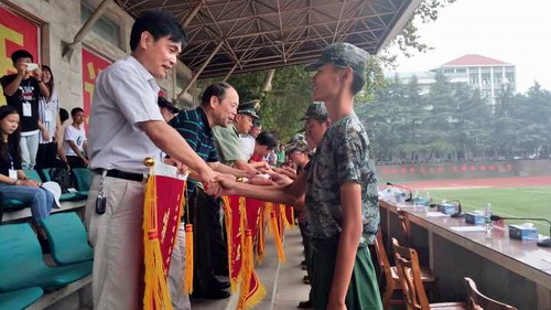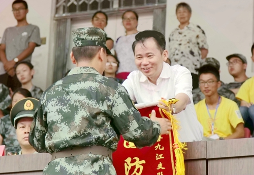 会上,校党委书记赵伟向武警九江支队赠送了“国防卫士,学子楷模”的锦旗。至此,2018级的新生们在今天给为期十天的军训画上了一个圆满的句号。
