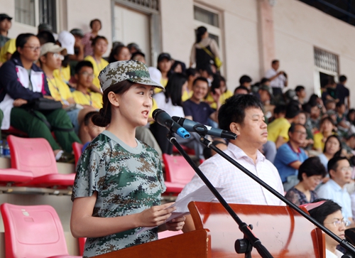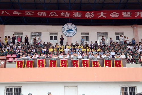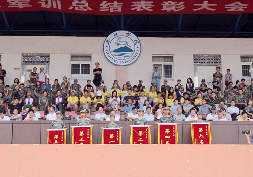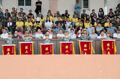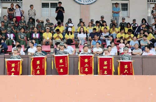 武警九江支队副参谋长、军训旅旅长甘露宣布军训会操获奖名单,学生处长、军训旅政委刘平宣布了军训内务评比结果。