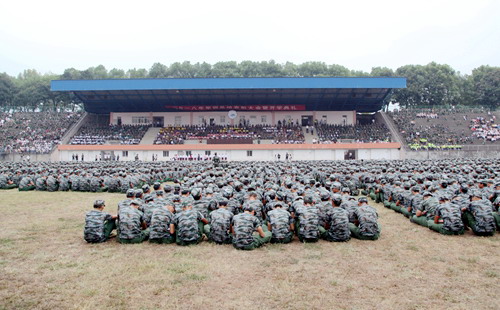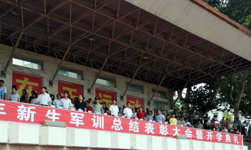 金秋送爽,丹桂飘香。9月16日上午,永利yl23411集团官网2018级新生军训总结表彰大会暨开学典礼分别在主校区和浔东校区隆重举行。武警九江支队副支队长郭华,在家校领导赵伟、刘晓东、魏立平、纪岗昌、陈春生、杨耀防、夏启国、查振华、李广欣出席了本次会议,各二级学院院长、党委书记以及有关职能部门负责人、全体辅导员、新生班主任及主校区、浔东校区、八里湖校区2018级近万名新生参加了本次大会。军训总结表彰大会由陈春生副校长主持。