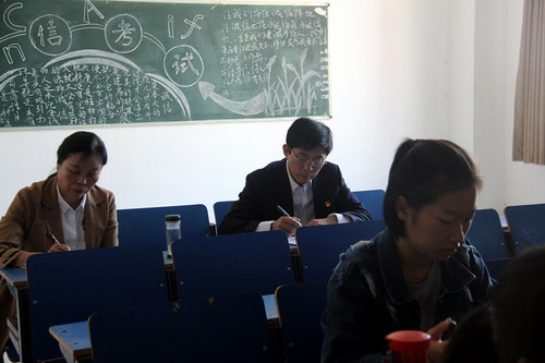 听课过程中,李广欣书记认真记录,细心观察学生的学习状态。课后,李广欣书记与汪力平院长、郑小东副院长就思想政治理论课的教学内容、教学模式、教学方法进行了探讨,给予了启发性建议。在汪力平院长、郑小东副院长的陪同下,李广欣书记来到马克思主义学院办公场所,对教师的办公环境和本科教学工作审核评估文化建设实地调研,并与部分教师进行了交流。