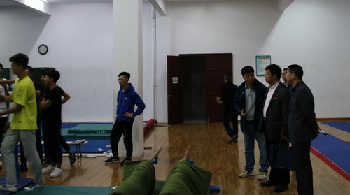 10月15日下午,陈春生副校长来到八里湖校区综合楼2楼体操房对王向棋老师的《体操》双杠内容的教学进行了简短的看课,随后来到304教室,听取了严武老师为体育A1721班讲授的《体育保健学》课程,教务处副处长张伏龙,体育学院院长段宝斌和教务科负责人一同听课。