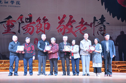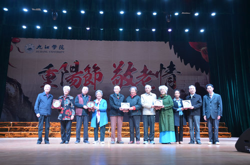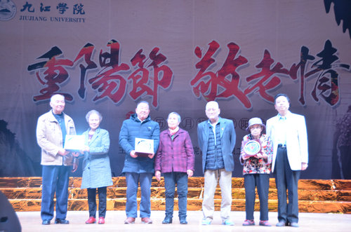 为弘扬尊老、爱老的优良传统,10月16日下午,正值重阳节来临之际,学校在主校区大礼堂举办2018年度九江学院“最美老同志”颁奖大会暨金婚庆典活动。当选的“最美老同志”及52对金婚夫妇欢聚一堂,共庆重阳佳节。校党委副书记魏立平出席活动并为“最美老同志”颁奖。