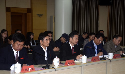 10月19日上午,在学校行政楼一号会议室学校隆重举行庐山文化研究中心学术委员会委员暨兼职研究员聘任仪式。参加会议的有江西省生态文明研究与促进会会长、南昌大学博士生导师、江西省人民政府原副省长、十一届全国人大常委会委员胡振鹏教授、山东大学文学院李剑锋教授、江西社会科学院赖功欧研究员、江西出版集团游道勤编审、赣南师范大学张玉龙教授、九江学院李宁宁教授;九江学院党委书记赵伟、校长刘晓东、党委副书记魏立平、副校长纪岗昌;庐山文化研究中心兼职研究员代表、庐山文化研究中心全体人员、其他相关单位负责人和庐山文化研究中心国学班学生代表。会议由陈春生副校长主持。