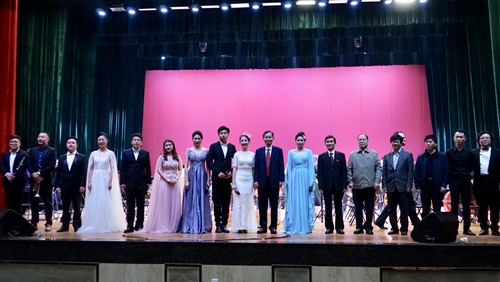 演出结束后,领导嘉宾走上舞台与演奏家们合影留念。