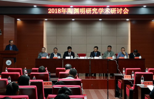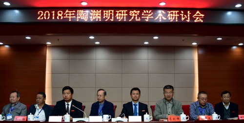 10月19—21日,2018年陶渊明研究学术研讨会在九江学院隆重举行。中国陶渊明研究会会长、华东师范大学龚斌教授,中国陶渊明研究会副会长、山东大学李剑锋教授,中国陶渊明研究会副会长、内蒙古大学高建新教授,中国陶渊明研究会副会长、江苏教育学院刘中文教授,中国陶渊明研究会副会长、广西大学李寅生教授,以及来自北京大学、清华大学、同济大学、上海大学、扬州大学、三峡大学、上海师范大学、华中师范大学、江苏师范大学、安徽师范大学、安庆师范大学、江西师范大学、天津师范大学、河南师范大学、河北师范大学、哈尔滨师范大学、东北财经大学、浙江理工大学、中国石油大学、青岛科技大学、江西科技师范大学、兰州城市学院、周口师范学院、黄淮学院、北京电子科技学院、郑州轻工业学院、牡丹江师范学院、贵州农业职业学院、江西高校出版社、九江市陶渊明纪念馆、庐山市陶渊明文化研究会等单位和机构的专家学者六十余人,参加了本次学术研讨会。