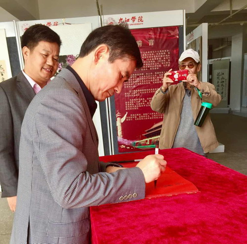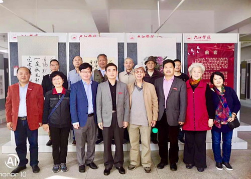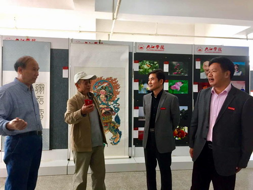 10月29日,九江学院第八届教职工书画摄影展在逸夫图书馆展厅顺利展出。校党委副书记魏立平、副校长王万山、副校长陈春生与展览主办单位的同志一起兴致勃勃地参观了展览。