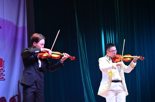 晚会由大合唱《走向复兴》拉开了帷幕,嘹亮的歌声贯彻整个晚会,铿锵有力的音调将观众带入晚会的氛围中。劲爆的舞蹈《卡路里&kiki》,随着音乐的响起,舞台上灵活的动作,舞出了青春的活力;器乐天行九歌乐声悠扬,抚摸观众的心灵,叩动心扉,让台下观众为之痴醉;女舞《button&boom》整齐和谐的节律,铿锵优美的舞步,让观众热情高涨;郭艳艳老师一首《往事》悦耳动听,清脆婉转,让人久久回味无穷;随后小品《上学那些事》动作、台词语气、情感掌握很好,展现了自己,更演绎了学生生活;风趣幽默的话剧《刺秦》,为现场带去了阵阵欢笑。现场的欢笑声和音乐声交织掺杂,将晚会的气氛推向高潮。晚会中抽奖环节更为本场晚会增添了乐趣,由弹奏和演唱融合起来的《莉莉安是不是你最爱的人》那种无比默契的合作精神,听上去和谐自然;雷人舞《串烧》丰富的表演内容,以灵活多变的舞蹈动作,尽显风采;随后一个个青春的面孔舞台剧《你的模样》展现了青春活力;风华正茂,乐队《光年之外》以激情的歌唱方式,使一切充满了活力;2018级助导改变在军训场上的严肃,以节目《走秀&兔子舞》给同学们留下了有趣的一面,另外一种表达自我,彰展青春的肢体语言,以催人奋进的形式来到我们面前,别有一番风味。