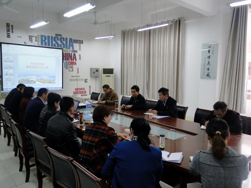 外国语学院党委书记杨杰简要介绍了学院“课程思政”建设和实施情况。他说,学院学习贯彻教育部《高校思想政治工作质量提升工程实施纲要》,坚持强化基础、突出重点、建立规范、落实责任的原则,学院党委围绕立德树人根本任务,把思想政治工作贯穿教育教学全过程,积极构建以“一个课堂,二个结合,三个品牌,四个作用”为特色的“三全育人”工作体系,全面加强和改进学院思想政治工作。他从“总体规划、工作进展、近期计划、几点思考”四个方面作了工作汇报。外国语学院副院长罗其娟、教务科长王伟、办公室主任邓海波作了补充汇报。会上,还现场播放了一段外国语学院老师“课程思政”的微视频。