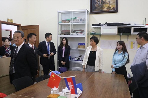 国务院参事许琳一行在柴克清院长的陪同下参观了柬埔寨孔子学院,对柬埔寨孔子学院从无到有、从少到多的软硬件建设表示欣慰和认可,并表示,柬埔寨孔子学院这九年来取得了令人瞩目的成绩,要继续努力,再创辉煌!
