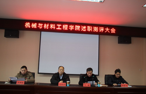 1月3日上午,机械与材料工程学院在机械实验楼206会议室举行处级领导干部年度述职与测评大会。副校长纪岗昌,校党委委员、宣传部部长冯健,组织人事部职称科科长张扬帆出席了此次述职测评会。会议由冯健部长主持,机材学院领导及全体教职工参加了会议。