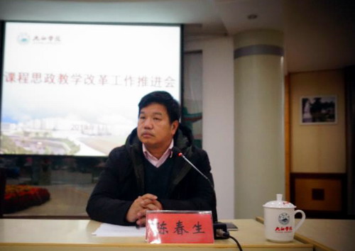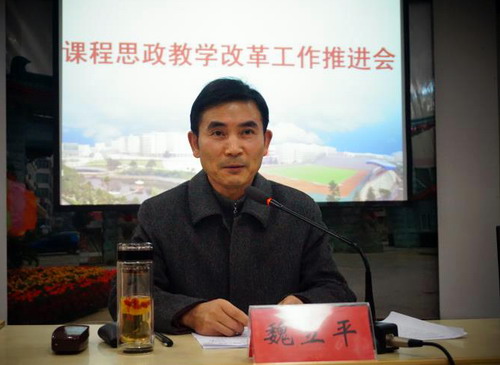 会上,校党委副书记魏立平就课程思政教学改革工作作了讲话。他说,为了进一步贯彻落实全国高校思想政治工作会议精神以及教育部《高校思想政治工作质量提升工程实施纲要》,大力推进习近平新时代中国特色社会主义思想进课堂、进教材、进师生头脑,落实立德树人根本任务,充分发挥课程育人主渠道作用,努力构建九江学院全员、全过程、全方位大思政教育教学体系。今天,学校召开“课程思政”教学改革工作推进会。魏副书记强调,学校党政领导高度重视课程思政教学改革,形成了统一认识,制定了《九江学院课程思政教学改革建设实施方案》,成立了九江学院课程思政教学改革工作小组、指导委员会、教学改革办公室。