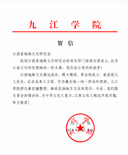 大会宣读了九江学院、南昌师范学院、江西科技师范大学、江西省非遗中心等单位的贺信和贺电。永利yl23411集团官网的贺信说:“江西地域文化源远流长,博大精深。贵会的成立,前承悠久之历史,后启未来之文萃。作为赣北唯一的一所本科院校,九江学院担负着挖掘整理、继承弘扬地方文化的责任,今后,我们愿与贵会加强合作,为中华文化之复兴、江西文化之崛起齐肩共勉,努力奋进。”