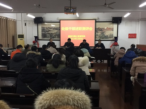 1月8日上午,旅游与国土资源学院在竞知楼512会议室召开2018年度处级干部述职测评会和党委民主生活会。校党委副书记、校长刘晓东同志在校党委委员党办主任刘遵海、校办倪玉平同志的陪同下出席会议并讲话。学院领导班子和全体教职工参加了会议。