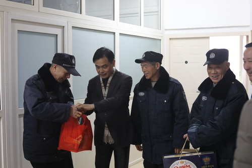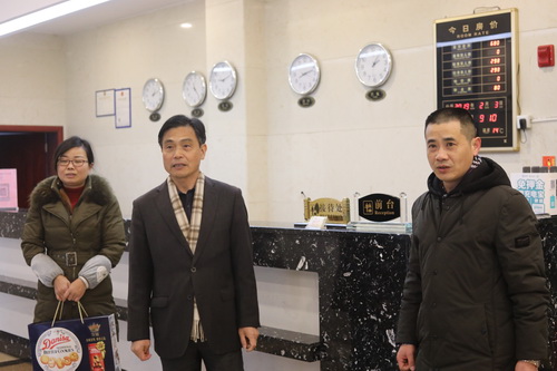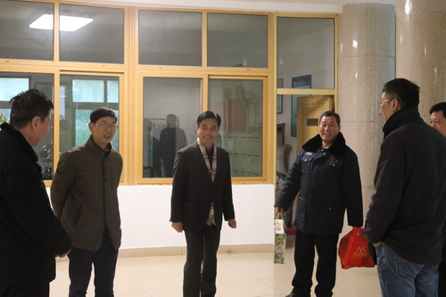 在主校区行政楼值班室、水电中心值班点、濂溪宾馆和附属医院门诊大楼,杨耀防副校长为一线员工们送去慰问金、慰问品和新春的美好祝愿,感谢他们为学校后勤保障服务和九江市卫生事业做出的贡献,希望大家保重身体、爱岗敬业,在积极奉献的同时过一个欢乐祥和的春节。