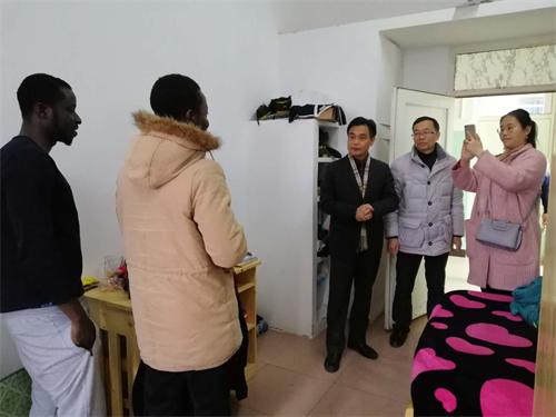 最后,杨耀防副校长检查了留学生宿舍,叮嘱学生们注意保暖防寒,特别要重视用电安全,要求国际交流学院做好假期供水供电,保证学生的生活需求。