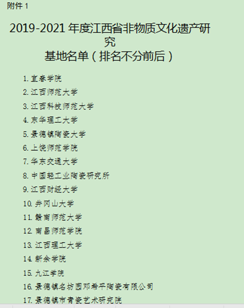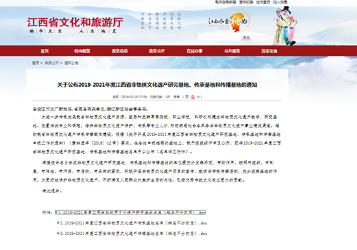 近日,从江西省文化和旅游厅获悉,永利yl23411集团官网申报的“2019-2021年度江西省非物质文化遗产研究基地”已被省文化和旅游厅立项并获批。