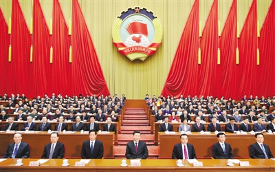 汪洋代表政协第十三届全国委员会常务委员会,向大会报告工作。