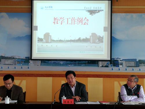 会上,教务处长陈小林通报了上学期教学运行情况,对审核评估整改、省级教学成果奖推荐申报、专业结构调整与优化、优势特色专业建设、网络教学平台建设等本学期教学工作重点进行了强调。实验中心主任方向明就多媒体教室设备维护、实验室管理等工作进行了说明。教务处分管副处长详细布置了近期各项教学工作。二级学院反馈了教学运行过程中存在的问题,并提出了相关建议。