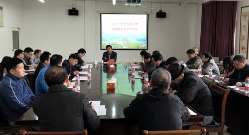 黄冬久副主任传达教育部、省教育厅和学校下发《关于进一步加强高校实验室安全工作检查的通知》《九江学院2019消防安全专项整治工作实施方案》《九江学院教学实验室安全工作标准及实施方案》有关文件,并带领与会人员学习文件精神。
