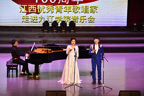 3月29日晚七点半,纪念五四运动100周年江西优秀青年歌唱家走进九江学院音乐会在艺术学院音乐厅举行。副校长查振华、江西文化演艺发展集团有限公司副总经理柯亨龙、九江市政法委副书记聂太贵,以及社会各界音乐爱好者、艺术学院师生等近500人观看了音乐会。