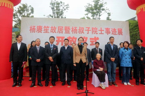 杨叔子院士夫人、华中科技大学教授徐辉碧在致辞中谈到,杨赓笙的一生是追求民主革命的一生,是追随孙中山先生革命,共守孙中山先生信念,追求孙中山先生理想的一生。杨赓笙故居的建成是一个曲折而又漫长的过程,这是湖口县委、县政府高度重视,狠抓落实的结果,是九江学院及各位同仁大力支持的结果。她代表杨叔子及杨赓笙先生后裔向大家表示衷心的感谢,希望杨赓笙故居能在中华民族伟大复兴的过程中,在传承和发扬优秀传统文化中发挥应有的作用。