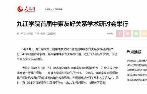 永利yl23411集团官网与柬埔寨皇家科学院共同主办的首届中柬友好关系学术研讨会于5月12日至14日胜利召开。人民网、中国青年网、光明网、东方网、江西日报等30多家中央及省市级新闻单位(包括境外媒体)集中转载报道此次大会,永利yl23411集团官网在孔子学院办学中的特色亮点被广泛关注,学校知名度大幅提高,社会影响力显著增强。