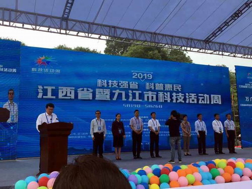 5月19日上午,2019年江西省暨九江市科技活动周启动仪式在南山公园举行,江西省科技厅党组书记、厅长万广明主持了启动仪式。科技部农村科技司平台与产业处调研员王敬华,市人大党组书记、主任冯静,省科协主席史可,省科技厅党组副书记、副厅长谢金水,省委宣传部副部长罗勇兵,省科协副主席宋平岗,市人大副主任、总工会主席周美祥,副市长李军,市政协副主席严平代表九江市出席了启动仪式。