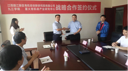 随后,双方就产学研战略合作协议及第一批达成的低粘度硅油的制备、卫生级油性硅蜡合成及熔点调控、卫生级聚醚改性硅油等三个立项项目进行了现场签约。会议结束后,与会人员在副总经理李爱民,总经理助理罗双云,办公室主任麻培智等陪同下参观了赣江新区有机硅创新院的实验室。