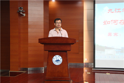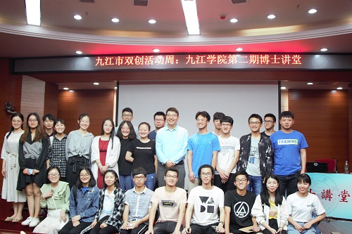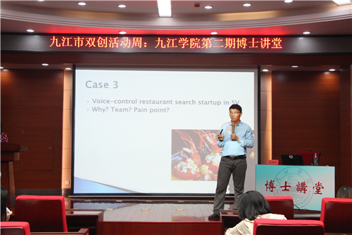 5月30日下午,为迎接九江市双创活动周,为永利yl23411集团官网第五届“互联网+”大学生创新创业大赛决赛预热。由学工处、团委主办的第二期博士讲堂开展创新创业报告会,第四届中国“互联网+”大学生创新创业大赛国赛评委、校友詹朋朋博士作了题为“如何在创业路演与赛事中脱颖而出”的精彩报告。参加“互联网+”大赛的学生创业团队200余人聆听了报告,报告会由团委书记闫来英主持。