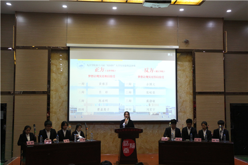 6月4日晚,永利yl23411集团官网第十六届“校园杯”大学生辩论赛总决赛在香远楼报告厅举行。学生处副处长项忠平、政法学院副院长李德恩、会计学院党委副书记罗维、党委宣传部精神文明办副主任吴彭年、马克思主义学院王卫华博士担任比赛评委。校团委书记闫来英与各二级学院辩论队的同学们观看了比赛。