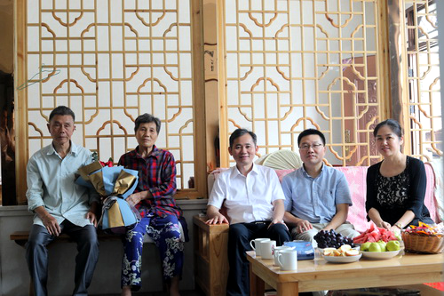 7月15日,校党委书记赵伟专程前往修水县看望回家省亲的邹鸿志博士,修水县委县政府主要领导陪同。