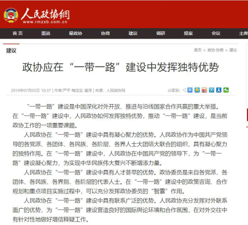 中央媒体、全国政协机关报——《人民政协报》在2019-07-03期,刊登江西省政协委员、九江市政协副主席、民盟九江市委主委严平,九江市政协委员、民盟九江市委常委、九江学院委员会主委梅龙宝,九江市政协教科体卫委员会主任潘浔的署名文章:《政协应在“一带一路”建设中发挥独特优势》。此文被多家媒体转载。