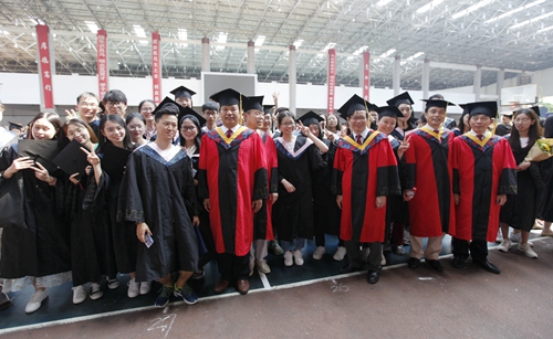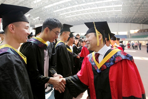 伴随着骊歌,毕业典礼在2019届全体毕业生们抛帽欢呼中结束,赵伟、刘晓东等校领导来到同学们中间,与他们合影、握手、话别。毕业生们徘徊在田径馆内外,和老师同学拍照留念,依依惜别。