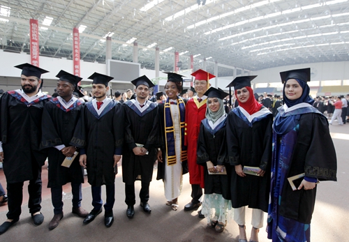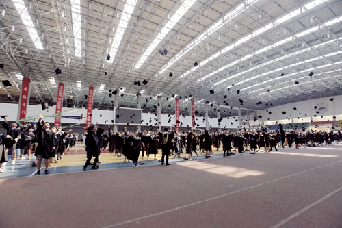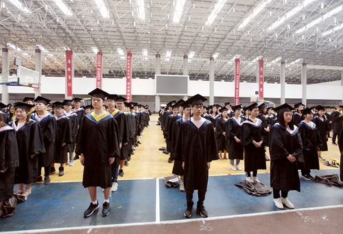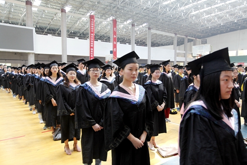 毕业典礼在雄壮激昂的国歌声中拉开帷幕。