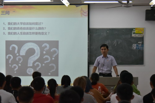 9月25日上午,魏立平来到竞知楼1010教室,为体育学院A1911、A1912班新同学讲授了第一堂思想政治理论课。
