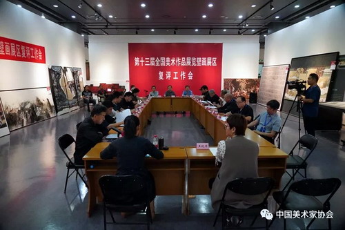 “第十三届全国美术作品展览” 壁画展区复评工作于9月11日晨河南郑州举行。壁画展区复评参评作品共有323件。经过严格评选,共遴选出202件入选作品,其中,进京作品20件(含获奖提名作品6件)。
