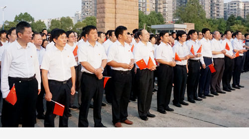 10月1日早上七点,美丽的校园在晨光的映照下熠熠生辉,九江学院千名师生齐聚升旗广场,举行“我和我的祖国”升旗仪式,为新中国70华诞庆生,向祖国母亲深情告白。校党委书记赵伟、校长刘晓东在九江市参加升旗仪式。校党委副书记魏立平,副校长纪岗昌、王万山、陈春生、杨耀防、夏启国、查振华,纪委书记李广欣,副校长陈小林 ,党委委员王殿元、冯健、刘遵海与永利yl23411集团官网正处级领导干部、学生辅导员代表、以及一千余名青年学子共同参与了“我和我的祖国”升旗仪式。升旗仪式由团委书记闫来英主持。