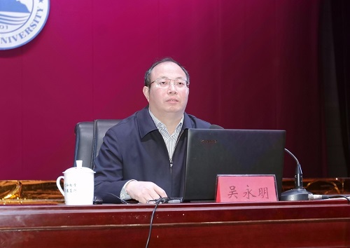 根据省委统一安排,11月26日上午,学习贯彻党的十九届四中全会精神省委宣讲团宣讲报告会在永利yl23411集团官网主校区大礼堂举行。省委宣讲团成员、省委宣传部副部长、省委教育工作领导小组副组长吴永明作宣讲报告。校党委书记赵伟主持报告会。校长刘晓东,副校长纪岗昌、王万山、杨耀防、夏启国,纪委书记李广欣,副校长陈小林,校党委委员王殿元、冯健,及副科以上领导干部、师生代表600余人参加报告会。